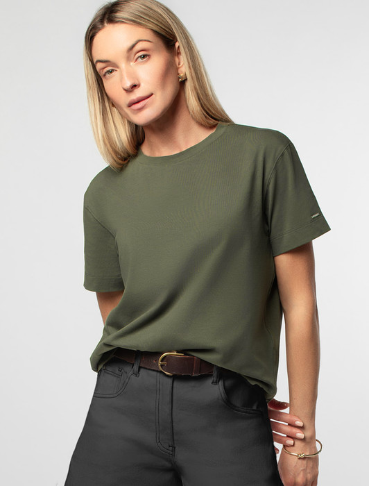 Состав: 92%Хлопок 8%ПУ Параметры модели на первом фото: Рост 170, бюст 83, талия 64, бедра 88Футболка выполнена из премиального хлопка. Базовая модель, которая хорошо будет сочетаться в гардеробе с любым низом и любым дополнительным верхом вне зависимости сезона. Эластан в составе способствует формоустойчивости и меньшей сминаемости. Изделие украшено логотипом бренда.