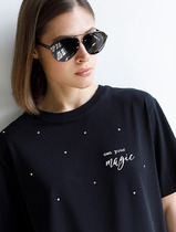 Vilatte Футболка из премиального хлопка с авторским принтом фольгой D49.978 чер