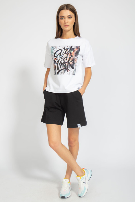 Джемпер свободного кроя. Удлиненный рукав, с подворотом. Принт методом термопереноса, цифровая печать. Ткань кулирная гладь , качество Пенье, плотность 200 г.м2