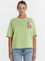 Джемпер женский свободного силуэта из комфортного трикотажного полотна, длиной до линии бедер. Горловина округлая. Рукав со спущенной линией плеча длиной до локтя. По переду расположена дизайнерская печать. Обращаем ваше внимание, что фурнитура может отличаться от фото.