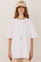 Джемпер прямого свободного силуэта из хлопкового трикотажного полотна. Вырез горловины округлый с притачной бейкой. Рукава втачные короткие. По переду дизайнерская печать.