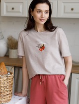21.04 Vilatte Футболка из эластичного футера с авторским принтом D49.095 кофе_на