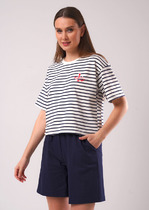 21.04 Clever Футболка женская CLEVER LF26-1234/3 молочный/т.синий