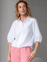 Укороченная блузка с рукавами буфами и с кулиской по низу из эластичного хлопка