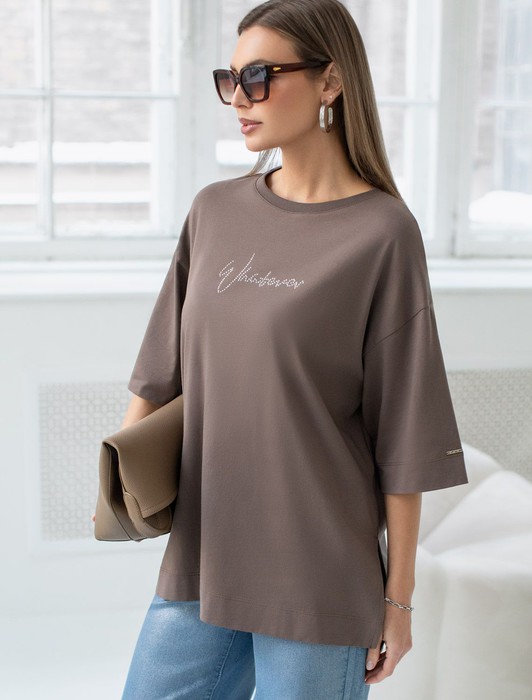 Совместные покупки Челябинск Женская одежда Футболки — Футболка оверсайз с принтом стразами из премиального хлопка с эластаном