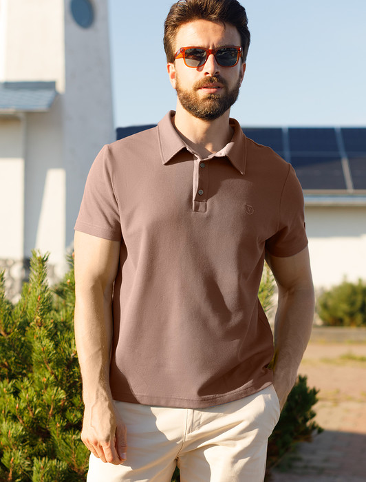 Состав: 80%Хлопок 20%ПЭ Параметры модели на первом фото: Рост 190, бюст 108, талия 87, бедра 104Футболка-поло выполнена из фактурного трикотажа. Однотонная модель с контрастной планкой и металлическими пуговицами с логотипом бренда. Эластичный хлопковый материал хорошо пропускает воздух и комфортно облегает фигуру. В таком изделии не будет жарко даже в самое теплое время года.