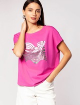 Повседневная футболка универсальна: она сочетается с джинсами, юбками или строгими брюками — легко создать как деловой образ для офиса, так и наряд для вечеринки или ужина вне дома. Матовое покрытие создает благородный блеск без лишней яркости, благодаря чему футболка смотрится свеж