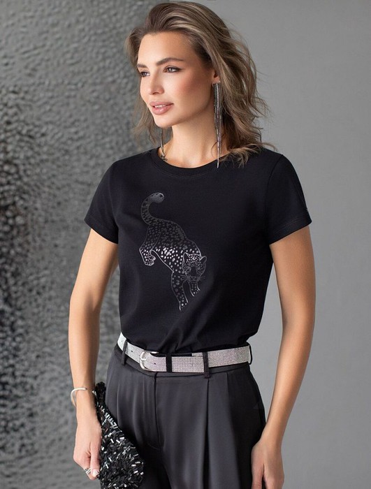 Совместные покупки Челябинск Женская одежда Футболки — Футболка Vilatte D49.123 черный_леопард
