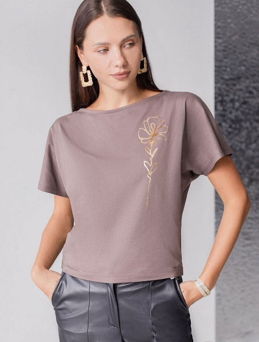 Футболка Vilatte D49.133 кофейный_цветок