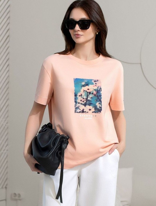 Модная футболка пудрового цвета привлекает внимание своим интересным дизайном и ярким принтом. Благодаря прямому крою изделие комфортно садится на любую фигуру, в том числе на большие размеры, и не сковывает движений. Круглый вырез подчеркивает современный стиль, а натуральный материал из хлопка с добавлением эластана обеспечивает удобство в повседневной носке и приятные тактильные ощущения. Прочность и износостойкая структура позволяют сохранять свежий внешний вид после множества стирок. Принт в виде цветов и надписи нанесен красками с устойчивым покрытием, перевод надписи: Everyday essentials - Повседневные вещи, которые необходимы., Стильная футболка гармонично вписывается в любой гардероб и подойдет для прогулок, отдыха или неформальных встреч. Благодаря особенностям кроя модель хорошо сидит, скрывая недостатки и подчеркивая достоинства. Яркая футболка идеально сочетается с базовыми вещами, позволяя создавать новые интересные образы каждый день.
