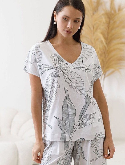 Совместные покупки Челябинск Женская одежда Футболки — Футболка Vilatte D49.153 белый-черный_листья