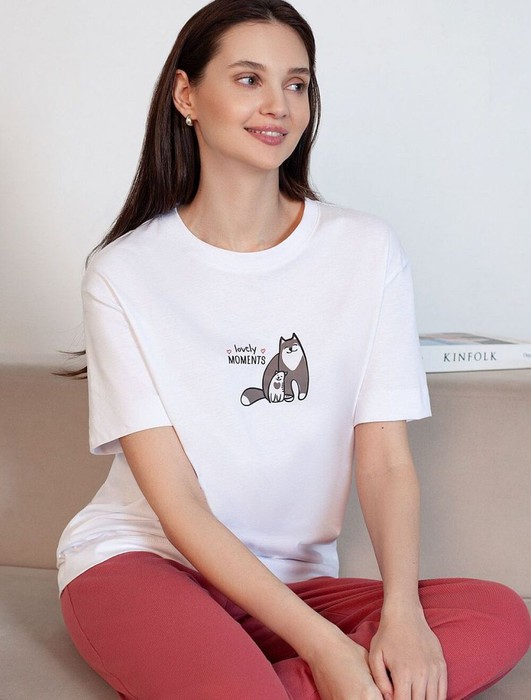 Совместные покупки Челябинск Женская одежда Футболки — Футболка Vilatte D49.158 белый_коты
