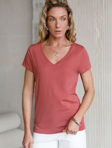 Футболка женская из гладкокрашенного трикотажного полотна «кулирка», свободного силуэта, с боковыми швами, переходящими в рельефы, в правом соединительном шве выполнен разрез. Горловина овальной формы обработана втачной планкой и дополнена декоративным элементом.