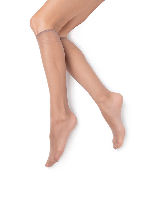 Женские эластичные гольфы из тюля с декоративной резинкой «ТОП комфорт» и невидимым мыском. Благодаря особому тюлевому плетению гольфы меньше подвержены появлению затяжек и дольше сохраняют прочность. Широкая удобная резинка деликатно облегает и обеспечивает дополнительный комфорт.