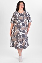 Стильный халат из кулирки. Застегивается на пуговицы, вертикальные белые и синие полосы, принт в виде насекомого и короны, имеются карманы, на спине бантовая складка общая длина приблизительно до середины бедра. Размеры от 46 до 58. Возможен розничный заказ данного товара.