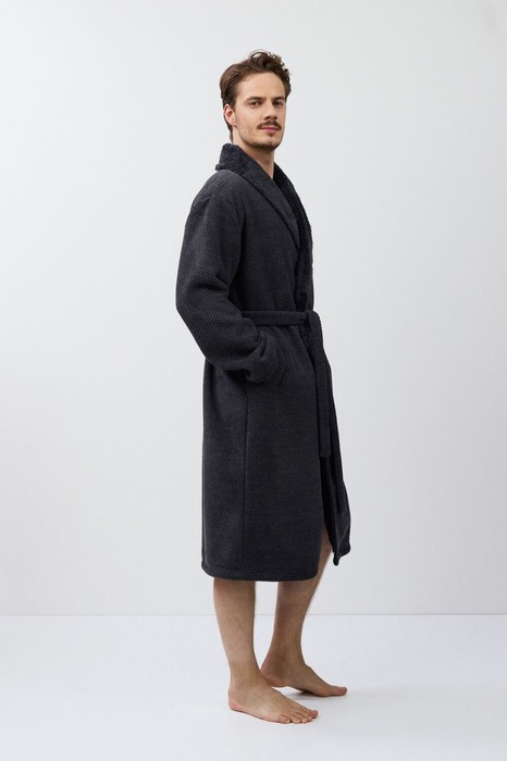 Расслабьтесь с комфортом в мягком халате GREGOR. Халат мужской с поясом, ниже колен. Изготовлен из текстурной ткани напоминающюу "ромб". По бокам карманы. Окутает и согреет вас в холодное время года. В нем вам будет тепло и уютно!