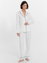 Халат молодежный из трикотажного полотна «вельмонд», прямого силуэта, с длинными втачными рукавами, капюшоном, карманами в боковых швах, и центральной бортовой застежкой на тесьму «молния». В области карманов и в верхней части левой полочки выполнена вышивка – аппликация.