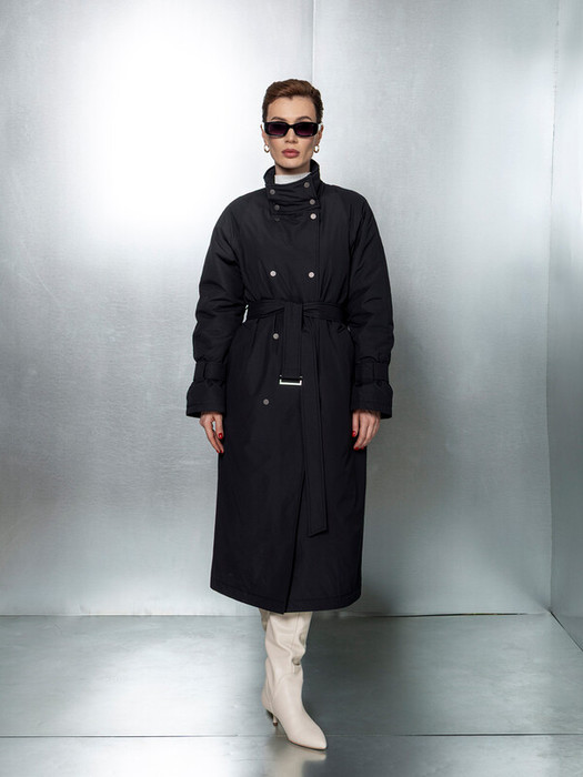 Утепленный классический плащ на кнопках. Изделие без капюшона. В комплекте есть пояс из основной ткани.