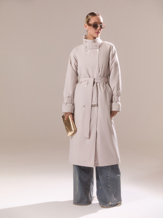 Утепленный классический плащ на кнопках. Изделие без капюшона. В комплекте есть пояс из основной ткани.
