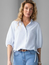 Базовую женскую блузку из льна можно заправить и тем самым подчеркнуть талию, или носить расслаблено на выпуск — низ на резинке позволяет чувствовать комфорт при носке в любом виде.