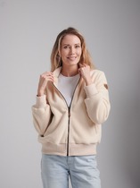 Толстовка женская оверсайз с втачным рукавом. Линия плеча спущенная. Горловина с капюшоном. По переду карман кенгуру. Рукав длинный по низу с притачной манжетой. По низу ширина толстовки регулируется фиксаторами с резинкой.