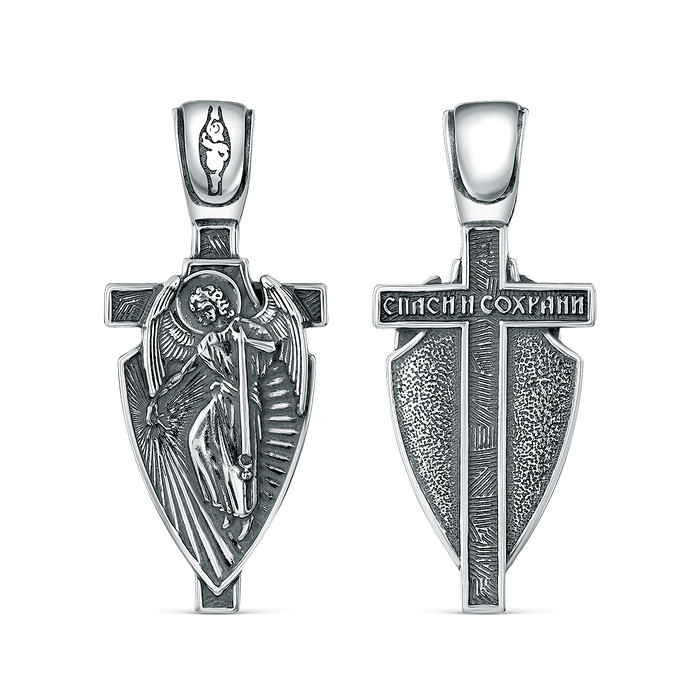 Совместные покупки Челябинск Ювелирные украшения и бижутерия Подвески — Икона-Крест из чернёного серебра - Ангел Хранитель, 3,5 см 925 пробы К3-362ч