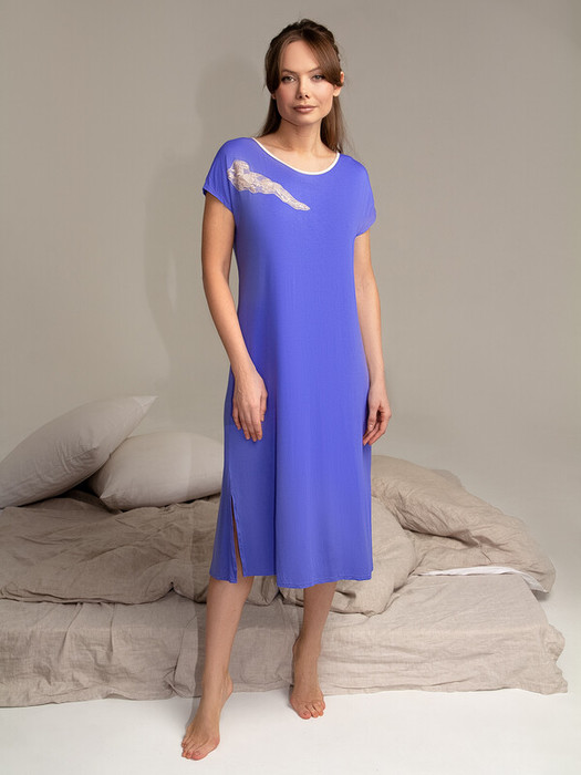 Женская домашняя сорочка из бамбукового трикотажа с короткими рукавами обеспечивает исключительный комфорт и приятные тактильные ощущения в течение всего дня. Свободный крой не сковывает движения и предотвращает чувство стеснения. Модель украшена кружевом в зоне декольте, что придает ей элегантный и изысканный вид. Состав ткани: 95% бамбук, 5% эластан