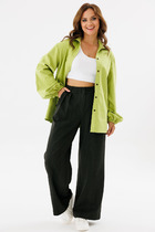 Брюки прямого свободного кроя имеют на талии мягкую эластичную широкую резинку.