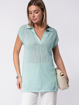 Летний женский кардиган свободного покроя прямого силуэта длиной ниже линии бедра без застёжки с центральной линией борта. Линия плеча опущена. Рукав короткий, выше локтя.