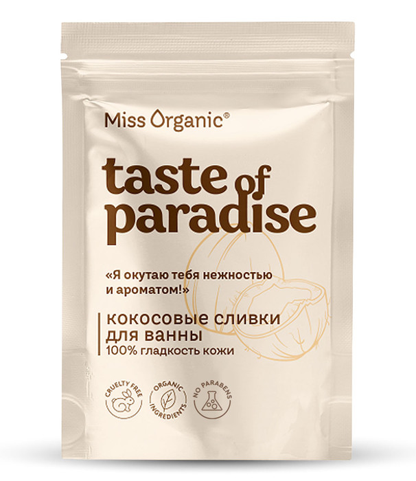 Кокосовые сливки для ванны 100% гладкость кожи TASTE OF PARADISE Miss Organic, 2