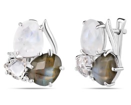 Серьги, горный хрусталь , лабрадорит , лунный камень, Богема