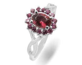 Кольцо из серебра рубеллит кварц, нанорубин, Ю-Деталь
