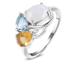 Кольцо, лунный камень , топаз , цитрин , наносапфир, Абелия