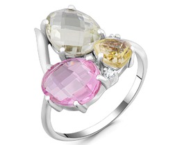 Кольцо, зеленый аметист , лимонный топаз , морганит, Богема