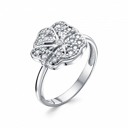 Кольцо с фианитом родированное серебро 925*