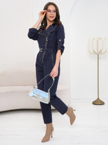 Комбинезон женский, без рукавов, с V-образным вырезом горловины по полочке и спинке. Отрезной по талии. Полочка в верхней части со складкой, с карманами и завязками в боковых швах. Спинка с выточками по талии. В боковые швы вставлен фигурный пояс по талии.