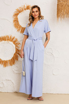 Комбинезон с отрезной планкой по переду, центральной застежкой на петли и пуговицы. По верхней части переда накладные карманы с клапанами. Комбинезон с втачным поясом, пояс присборен на резинку. На передних половинках нижней части комбинезона выполнены накладные карманы с клапанами. Рукав втачной, длинный, с отрезной манжетой.