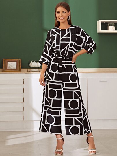 Комбинезон с широкими штанинами и геометрическим рисунком