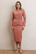 Комплект из легкой костюмной ткани.Жакет свободного силуэта с цельнокроеными рукавами, центральной застежкой на одну пуговицу и удобными функциональными карманами по переду.Воротник отложной с лацканами.Брюки свободного прямого силуэта с высокой посадкой и эластичной резиной по поясу.