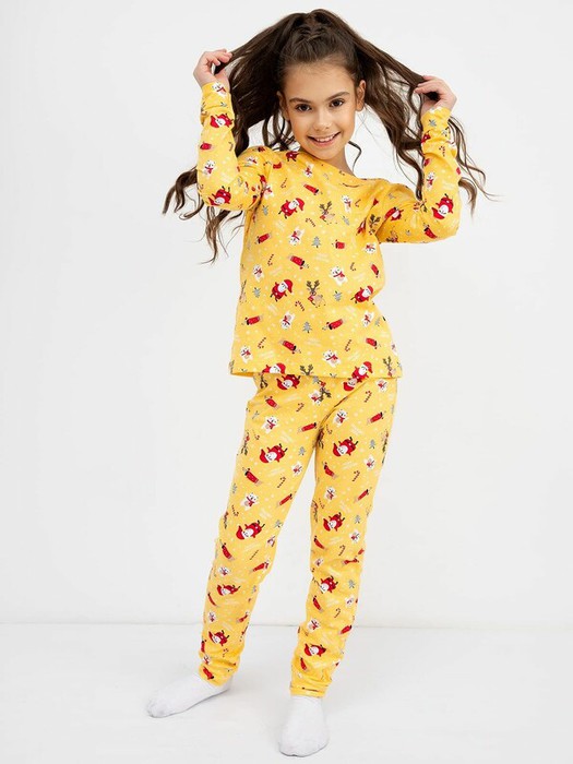 Уютная хлопковая пижама для девочки. Широкие эластичные манжеты на рукавах лонгслива и штанинах брюк. Интересный симпатичный дизайн. Продуманная конструкция. Идеальный вариант для приятного сна и расслабленного отдыха