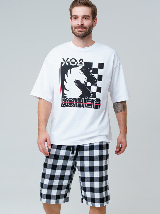 Этот мужской комплект для сна и дома сочетает в себе практичность и стиль. Футболка выполнена из хлопкового трикотажа, который дышит и не вызывает дискомфорта. Шорты с микроначёсом мягко прилегают к телу и не теряют форму после стирки.