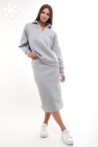 Под конец рабочего дня хочется на ручки? Мы создали костюм, в котором вы целый день будете чувствовать себя окутанной теплом и заботой. Оверсайз по-прежнему в тренде, а юбка длины миди перешла в разряд классики. Комплект one size. До 52 размера.