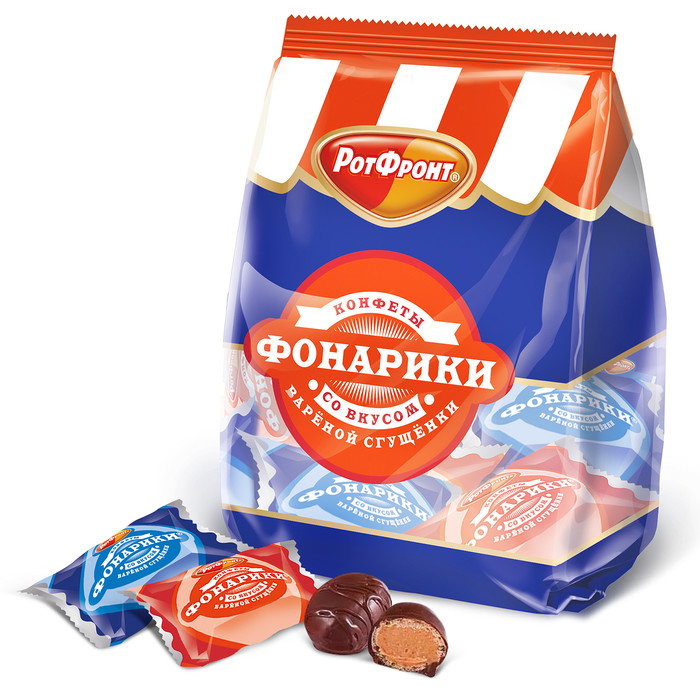 Конфеты «Фонарики» от фабрики «Рот Фронт» – хрустящее буйство сладкого вкуса. Нежный крем из вареной сгущенки с насыщенным карамельно-сливочным вкусом окружен хрустящей оболочкой вафельного шара, покрытого тонким слоем шоколадной глазури.