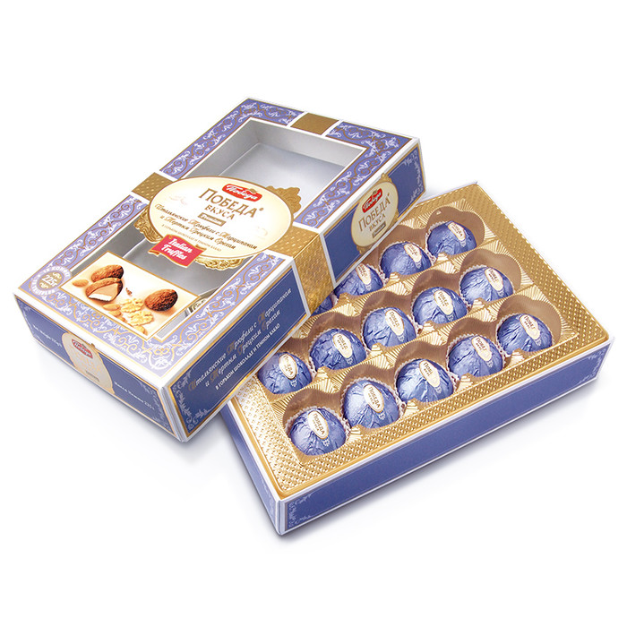 Трюфели с марципаном – оригинальный рецепт фабрики «Победа». В его основе сочетание классического сливочно-шоколадного «трюфельного сердца» с прослойкой из марципана – тертого миндального ореха. Изюминка этого вкуса а в том, что в трюфельную основу в этой конфете добавлен тертый грецкий орех.