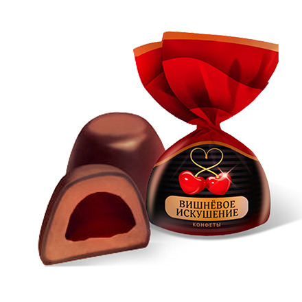 Глазированная конфета с нежным помадным слоем в сочетании вкуса какао и вишни с добавлением алкоголя.