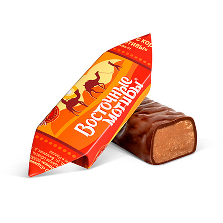 Глазированные конфеты «Восточные мотивы» – это сочетание хрустящей вафельной крошки, какао, жареного арахиса. Конфета имеет плотный, но нежный корпус с нежным ванильно-сливочным ароматом.