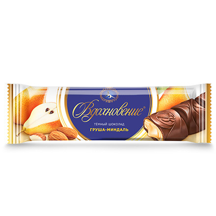 Изысканное сочетание темного шоколада и нежной кремовой начинки с добавлением тертого миндаля и сочной груши.