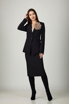Костюм женский - футболка с удлиненным рукавом и контрастной отделкой, принт в виде формул, шорты с карманами, контрастная отделка.