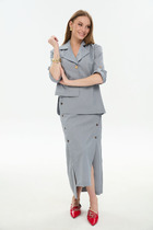 Костюм женский из кулирного полотна состоит из кофты и брюк. Кофта прямого силуэта. Горловина круглая. Рукав длинный, втачной на манжете. Низ изделия на поясе. На полочке принт в виде цветов. Брюки прямые, в боковых швах есть карманы. Верх на поясе с резинкой. Низ обработан на плоскошовной машине.
