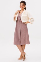 Костюм женский из кулирного полотна состоит из футболки и брюк. Футболка прямой силуэт. Горловина круглая, рукав короткий, втачной, низ изделия обработан на плоскошовной машине. Брюки прямые, верх на поясе с резинкой, в боковых швах внутренние карманы, низ изделия с манжетом. На полочке и передней половине брюк принт.